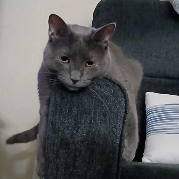 Evie is a small, solid gray cat. She is shy and takes a while to adjust to a new environment, but enjoys attention once she gets to know a person. She is a mellow kitty and enjoys spending time with people and loves to smoosh up against her foster mom while she's watching tv. Her favorite past time is watching cat tv and batting at the birdies. She loves interactive toys, like the Cat Dancer. She needs an experienced cat owner who is patient and able to give her time to settle into a new environment and feel comfortable. She needs to be an only cat and would do best in a quiet home, without young children or dogs. She does not like to travel in a car, so if you're looking for a cat to travel with you, she would not be a good fit. Evie just had a dental in February 2025, so she has nice, clean teeth! Approx. DOB: 6/1/22.
