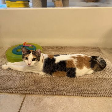 Kalani is a dilute calico, tabby. She is very sweet and lovable. She has a lot of energy and loves to run and play with toys and loves interactive toys. She especially loves to bird watch out a window or bat balls across a room. She is shy at first but warms up to people quickly. She doesn't love to be picked up and held, but does love pe